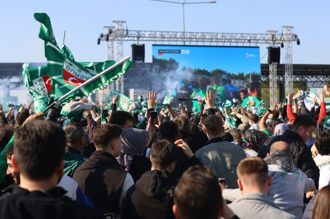 Maç için Balıkesir'e çıkarma yapılırken, binlerce Bursalı ise şampiyonluk maçını Büyükşehir Belediyesi tarafından Acemler’de kurulan dev ekranda, omuz omuza izledi.