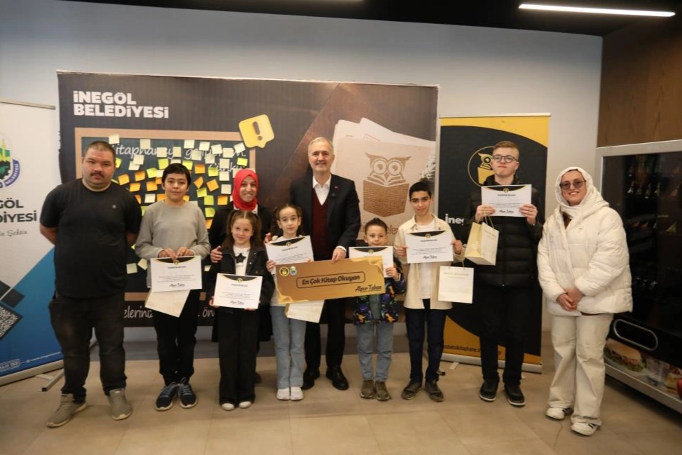 İnegöl Belediyesi’nin örnek projelerinden olan ve 30 bin aktif üye ile günlük 800 ila bin öğrencinin kullandığı Nöbetçi Kitaphanelerde Kütüphaneler Haftası etkinlikleri kapsamında artık geleneksel hale gelen Kitaphane En’lerinin Ödüllendirilmesi programı Cumartesi günü gerçekleştirildi. Yeni Yaşam Alanı ve Kent Meydanı içerisinde bulunan D Blok Nöbetçi Kitaphanede yapılan törende, Nöbetçi Kitaphanelerin "En Çok Kitap Okuyan" ve "En İyi Kullanıcı" ödüllerini almaya hak kazanan öğrencilere ödül takdimini Belediye Başkanı Alper Taban yaptı. Başkan Taban’dan yeni kitaphaneler müjdesi Ödül töreninde kısa bir selamlama konuşması yapan Başkan Taban, yeni kitaphane müjdeleriyle öğrencileri mutlu etti. Başkan Taban, "Bu hafta Kütüphaneler Haftası kutlanıyor. Bizim de Kitaphanelerimizin artmasıyla ilgili hedeflerimiz var. Bu konuda özellikle öğrencilerimizin, gençlerimizin ve yetişkinlerimizin dikkatini çekebilmek adına bir dizi hedefler koyduk kendimize. İçinde bulunduğumuz bu dönemde şehrimizde yeni kitaphaneler açmak istiyoruz. Bu merkezlerimizi mahallelerimize yaymak, vatandaşlarımızın yaşam alanlarını yaklaştırmak istiyoruz. Bununla ilgili de önümüzde yeni çalışmalar var. Özellikle Akhisar, Yenice, Alanyurt bölgesinde yapacağımız kitaphane çalışmalarımız olacak" dedi. Gençlerimiz mutlu Merkezlere gelen gençleri gözlemlediğini ve mutlu olduklarını gördüğünü de ifade eden Başkan Taban, "Öncelikle onlara çok teşekkür ediyorum. Bu çalışma azmi, isteği, hedeflerine varma isteği bizim için çok değerli. Ailelerimiz için, bu şehrin yöneticisi olan bizler için ve ülkemiz için çok değerli. İnegöl Belediyesi olarak biz şunu fark ettik. Bu tarz hizmetleri vatandaşlarımızın, gençlerimizin önüne koyduğumuzda kullandıklarını, faydalandıklarını gördük. Hatta ve hatta daha fazlasının ihtiyaç olduğunu gördük. Bunun için inşallah bu hizmetlerimizi arttıracağız" diye konuştu. Merkezlerde aile ortamı kuruluyor Belediye Başkanı Alper Taban, kitaphane personellerinin de seçimine özen gösterdiklerini vurgulayarak; "Kitaphanede görev yapacak personellerimizi seçerken özellikle bu alanda uzman isimleri tercih ediyoruz. Burada evlatlarımıza rehberlik edebilecek arkadaşlarımızı özel olarak seçiyoruz. Onlara da çok teşekkür ediyorum. Burada aynı zamanda bir aile huzuru kurmaya gayret ediyoruz. Gelen her öğrenciyi arkadaşlarımız aileden biri olarak karşılayıp ilgileniyor" açıklamalarında bulundu. Nöbetçi kitaphaneler öğrencilere düzen kazandırdı Ödül alan ve Nöbetçi Kitaphanelerden faydalanan öğrenciler de merkezler hakkındaki görüş ve düşüncelerini paylaştı. Serkan Özdemir isimli öğrenci, "Bu ödülü aldığım için kendimi çok mutlu hissediyorum" dedi. Ruken Askar isimli öğrenci ise "Nöbetçi Kitaphanenin bana kattığı çok şey var. Düzenli ders çalışabiliyorum. Sürekli geliyorum" diye konuştu. Kerem Özkan isimli öğrenci de "Kitaphaneye her zaman sıklıkla geliyorum. Burası bana düzen, mutluluk, arkadaş ortamı kazandırdı. Benim yapamadığım soruları burada arkadaşlarımın anlatmasıyla daha kolay kavrayabiliyorum" ifadelerinde bulundu. Nöbetçi kitaphanelerin en’leri Nöbetçi Kitaphanelerin bu yılki enleri ise şöyle sıralandı: Gençlik Merkezi Kitaphanede en çok kitap okuyan Burak Gök, en iyi kullanıcılar ise; Zeynep Dündar ile Devrim İdil. D Blok Kitaphanede en çok kitap okuyan öğrenciler; İlkokul kategorisinde Elif Güney, Ortaokulda Ahmet Yasin Aras ile lise ve üzeri Ruken Askar. En iyi kullanıcılar da İlkokulda Elif Güney, Ortaokulda Yusuf Gezici, lise ve üzeri Yasin Turan. Huzur Kitaphane en çok kitap okuyanlar; İlkokulda Çağran Şentürk, Ortaokulda Enes Özlük, lise ve üzeri Zeynep Çelik. En iyi kullanıcılar; İlkokulda Çağran Şentürk, Ortaokulda Asmin Durmuş, Lise ve üzeri Nursel Durmuş. Mesudiye Kanal İnegöl Kitaphanede en çok kitap okuyan; İlkokulda Muhammet Emir Taş, Ortaokulda Serkan Özdemir, Lise ve üzeri Sevda Yılmaz. En iyi kullanıcılar; İlkokulda Muhammet Emir Taş, Ortaokulda Bestami Er, Lise ve üzeri Cihat Çetinkaya. Konak Kitaphanede ise en iyi kullanıcı Semanur Küçük.