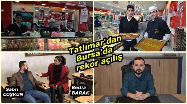 Tatlımar firma yetkilisi Sabri Coşkun, Bursa'da 48 şubemizle Bursa ve Eskişehir'de ciddi bir istihdam sağlıyoruz. İlk Bursa'ya geldiğimizde şevkimizi kırmak isteyenler oldu. "Biz çok devi gördük, İstanbul'dan gelip burada yol olup gittiler" Ama biz hiçbir zaman bu sözlere kanmadık. Bizim gitmeye niyetimiz yok. Biz Bursa'ya iş yapmaya geldik. Bursa'ya hizmette bulunmaya geldik. Firmamız çatısı altında insanlara istihdam sağlamaya geldik. Çok fazla kar marjı gözetmeden, ciddi paralar kazanma derdi olmadan, istihdam anlayışıyla bu yola çıktık ve 48 şubemizle Bursa'nın her yerinde kendimizi benimsettik. İnşallah daya iyi çalışmalarımızla, daha büyük projelerimizle, daha çok istihdam ortamları açmayı planlıyoruz" diye konuştu.