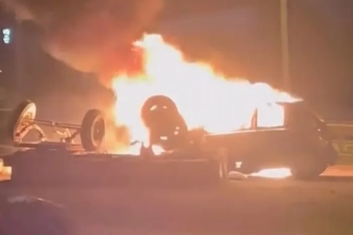 Kaza ve yangın sonucu otomobil kullanılamaz hale geldi. Kazayla ilgili inceleme başlatıldı.