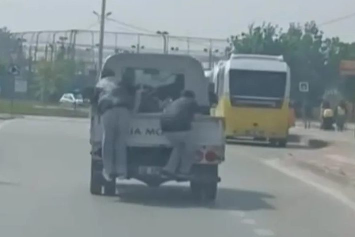 Olay, Gürsu ilçesinde meydana geldi. Canlarını hiçe sayan 2 genç, kasalı kamyonetin arkasına tutunarak ilerlemeye başladı. O anları gören diğer sürücüler, kamyonet sürücüsünü korna ile uyarsa da sonuç alamadı. Çocukların tehlikeli oyunu, saniye saniye amatör kamera ile kaydedildi.