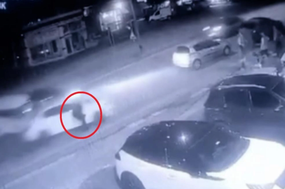 Çevrede bulunan bir işyerinin güvenlik kamerasına yansıyan görüntülerde, hafif ticari park halindeki bir otomobil çarpması ve o sırada çarptığı aracın yanında yürüyen vatandaş kıl payı ile kurtulduğu görüldü.