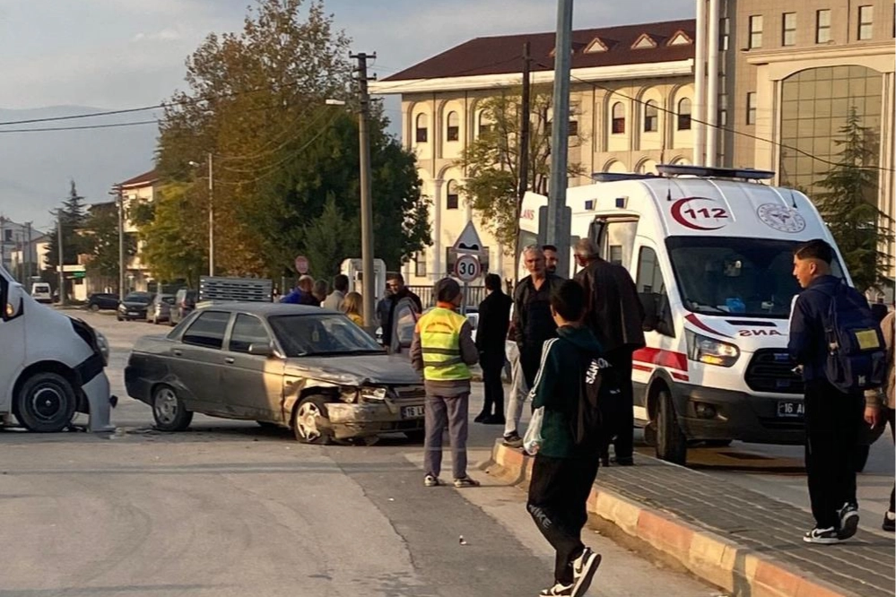 Kaza saat 09.00 sıralarında Akhisar mahallesi 2. Fatih caddesinde meydana geldi. 2. Fatih caddesinde seyir halinde olan Sürücü Selver Ş.(35) yönetimindeki 16 LKS 44 plakalı otomobil ile ara sokaktan çıkan Davut Ö. Yönetimindeki 16 S. 6404 plakalı servis minibüsü çarpıştı. Kaza sonucu otomobilin sürücüsü yaralandı. Yaralı kaza yerine sevk edilen Ambulansla İnegöl Devlet Hastanesine kaldırıldı. Polis kazayla ilgili soruşturma başlattı.