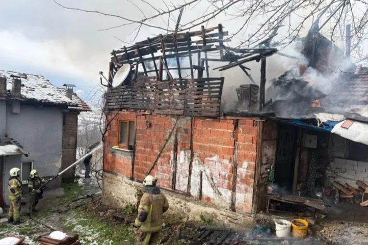 Bursa'nın İnegöl ilçesinde meydana gelen yangında tek katlı ev kül oldu.