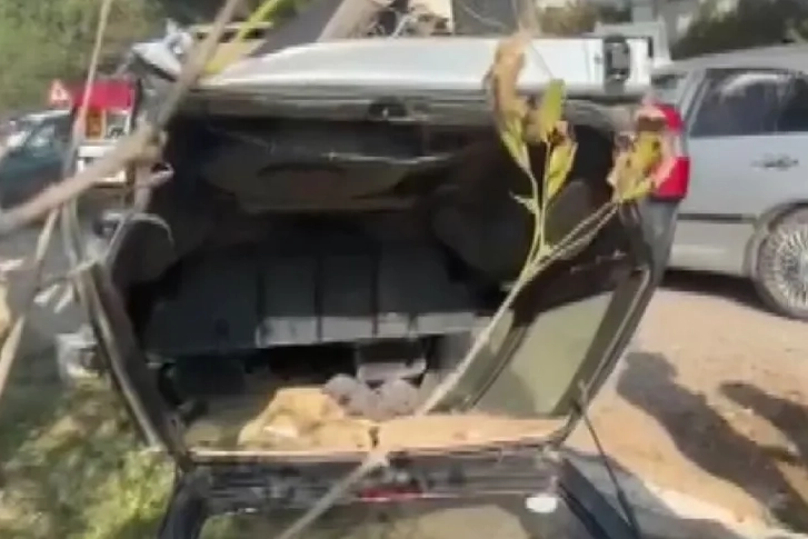 Bursa'nın Nilüfer ilçesinde, İzmir yolunda seyir halindeyken kontrolden çıkan otomobil, refüje çarpıp takla attı. Kazada otomobil ters dönerken bir tekeri yerinden koparak yola savruldu.