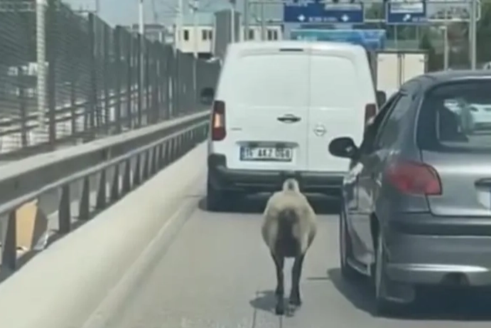 Merkez Nilüfer ilçesi Üçevler Mahallesi İzmir Yolu Caddesi'nde sahibinin elinden kaçan koyun trafiği alt üst etti. Sahipleri koyunu yakalamaya çalıştı ancak akan trafikte yakalamak mümkün olmadı. Bir süre daha koyunu kovalayan sahipleri en sonunda yakalayarak araca bağladı.
