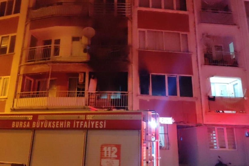 Bursa'da bir apartman dairesinde çıkan yangın paniğe neden oldu. Yangını fark eden dairedeki kadın, 2 çocuğunu da yanına alarak kendisini sokağa attı. Yükselen alevler nedeniyle apartmanda 5 kişi dumandan etkilendi.