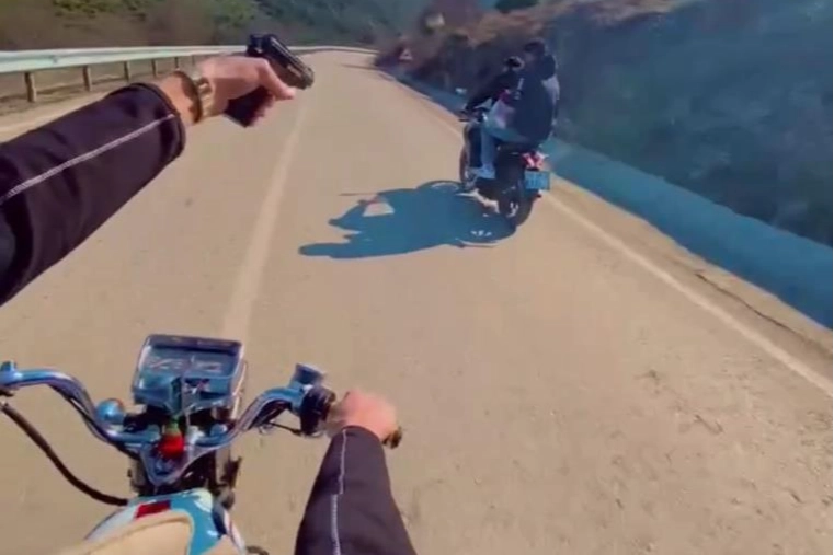 Bursa'da motosikletli gençler eğlencenin dozunu kaçırınca seyir halindeyken birbirlerine kurusıkı tabanca ile ateş ettiler. O anlar cep telefonu kamerasına yansıdı.