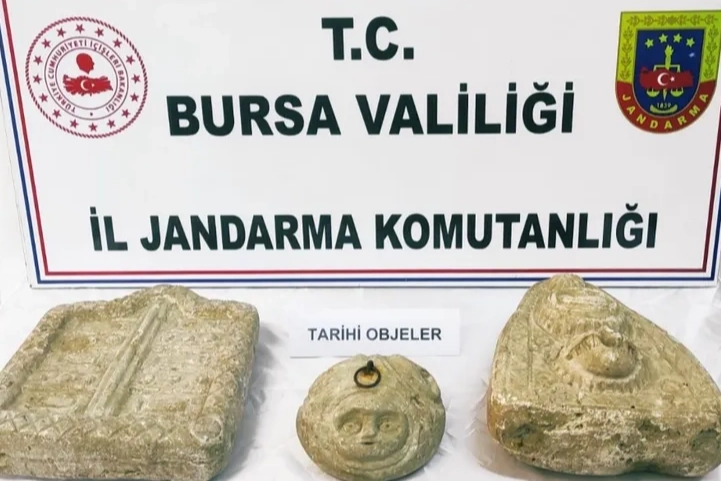 Gürsu İlçe Jandarma Komutanlığı ile İstihbarat Şube Müdürlüğü ekipleri tarafından Kumlukalan Mahallesi’nde şüpheli bir araç durduruldu. Cumhuriyet Savcılığı’ndan alınan arama kararına istinaden araçta yapılan aramada, tarihi eser niteliğinde olduğu değerlendirilen 3 adet obje ele geçirildi. Araçta bulunan N.L. ve M.K. isimli şahıslar gözaltına alındı. Şüpheliler, işlemlerinin ardından sevk edildikleri adli makamlarca adli kontrol şartıyla serbest bırakıldı.