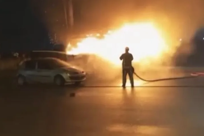Yangın, merkez Osmangazi ilçesinde meydana geldi. Seyyar olarak kokoreç satılan araçta henüz bilinmeyen bir sebeple yangın çıktı. Yangını gören vatandaşlar durumu itfaiye ekiplerine bildirdi. İhbar üzerine olay yerine gelen itfaiye ekipleri yangını söndürürken, araç kullanılamaz hale geldi. Alev alev yanan araç, amatör kameraya yansıdı.