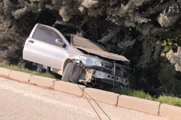 Kaza saat 12.00 sıralarında Alanyurt-İnegöl yolu üzerinde meydana geldi. Alanyurt'tan İnegöl'e seyir halinde olan Aziz D.(57) yönetimindeki 16 ACK 76 plakalı otomobil, iddiaya göre başka bir aracın sıkıştırması sonucu sürücüsünün kontrolünden çıktı. Yoldan çıkan araç alışveriş merkezi bahçesindeki ağaçlara çarparak durabildi.