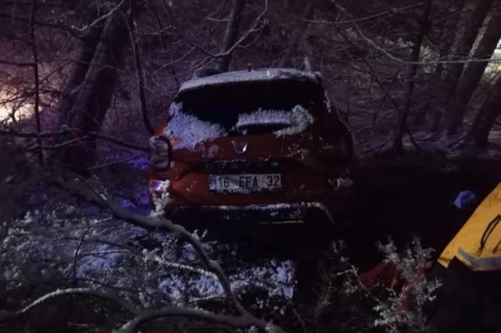 Kaza, Mustafakemalpaşa ilçesi Suuçtu Şelalesi mevkiinde meydana geldi. Edinilen bilgiye göre, Mehmet A. (33) idaresindeki 16 EFA 32 plakalı otomobil, yoğun kar yağışı sebebiyle sürücüsünün kontrolünden çıkarak şarampole yuvarlandı. Kazayı gören vatandaşlar durumu 112 Acil Servis Hattı'na bildirdi. İhbar üzerine olay yerine sağlık ve jandarma ekibi sevk edildi. Kazada Mehmet A., Ayşegül A. (28), Tarık Mete A. (2), Özgül K. (56) ve Mustafa K. (56) yaralandı. Yaralılar, olay yerinde yapılan ilk müdahalelerinin ardından hastaneye sevk edildi. Yaralılardan Mustafa K.'nin durumunun ağır olduğu öğrenildi.