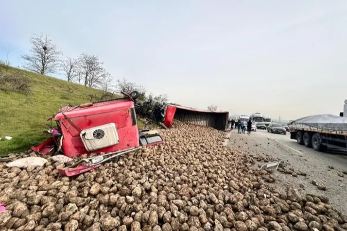 Kaza, saat 11.30 sıralarında İstanbul-İzmir Otobanı, Hal Kavşağı mevkiinde meydana geldi. Edinilen bilgiye göre, şeker pancarı yüklü TIR, sürücüsünün kontrolünden çıkıp önce hafif ticari araca, sonra kamyonete çarptı. Savrulan araçlar refüje girerken, TIR yola devrildi. Kazayı gören çevredekiler yaralıların yardımına koşarken, 112 ekiplerine bilgi verildi. İhbar üzerine olay yerine çok sayıda polis ve sağlık ekibi sevk edildi. Sağlık ekiplerince ilk müdahalesi olay yerinde yapılan 1'i ağır 5 yaralı ambulansla bölgedeki hastanelere sevk edildi. Şeker pancarlarının yola savrulması nedeniyle, trafik ekipleri bölgede başka kazaların yaşanmaması için tedbir aldı.