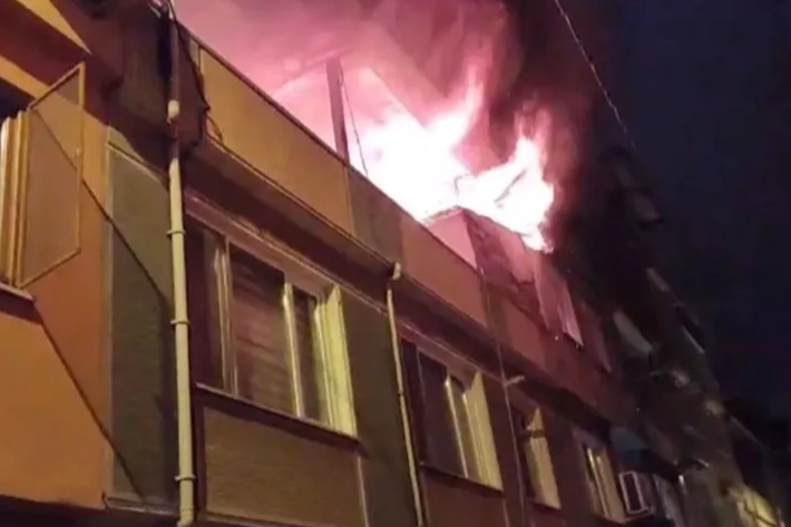 Bursa'da 3 katlı binanın çatı katında çıkan yangın, itfaiye ekiplerinin müdahalesiyle söndürüldü. Yangına müdahale etmeye çalışan ekiplerin üstüne sokak üzerinden geçen elektrik hattı düştü. Korku dolu anlar saniye saniye kameraya yansıdı.