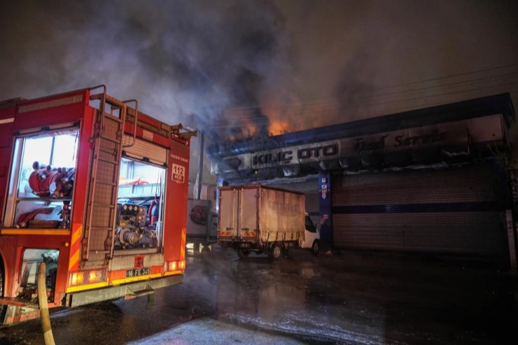 Bursa'da oto tamir dükkanı alevlere teslim oldu