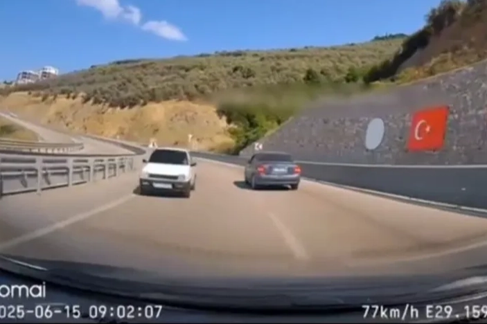 İstanbul İzmir otobanı Gemlik bağlantısında ters yöne giren bir otomobil, hızla ilerleyerek karşı yönden gelen sürücülere zor anlar yaşattı. Araçların ani manevralarla çarpışmaktan son anda kurtulduğu olay, araç kamerasına anbean yansırken, araç sürücülerinin panik içinde korna çaldığı ve şerit değiştirerek kurtulmaya çalıştı. Görüntüler üzerine trafik ekipleri soruşturma başlattı.