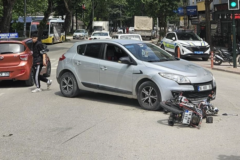 Kaza, saat 13.00 sıralarında Hamidiye Mahallesi Park Caddesi üzerinde meydana geldi. Ömer P. (17) yönetimindeki 16 BHM 157 plakalı motosiklet, seyir halindeyken karşı yönden sokağa dönüş yapan Abdülcebbar E. (26) yönetimindeki 16 KKR 98 plakalı otomobille çarpıştı. Çarpışmanın etkisiyle devrilen motosikletten düşen sürücü yaralandı. Yaralı, kaza yerine sevk edilen ambulansla İnegöl Devlet Hastanesine kaldırıldı. Polis, kazayla ilgili inceleme başlattı.