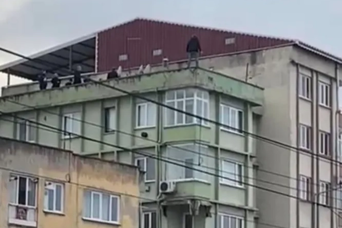 Saatlerdir çatıda bekleyen şahıs polis ekiplerinin ikna çabasıyla çatıdan indirilirken, şahsın eşiyle barışmak için çatıya çıktığı öğrenildi.