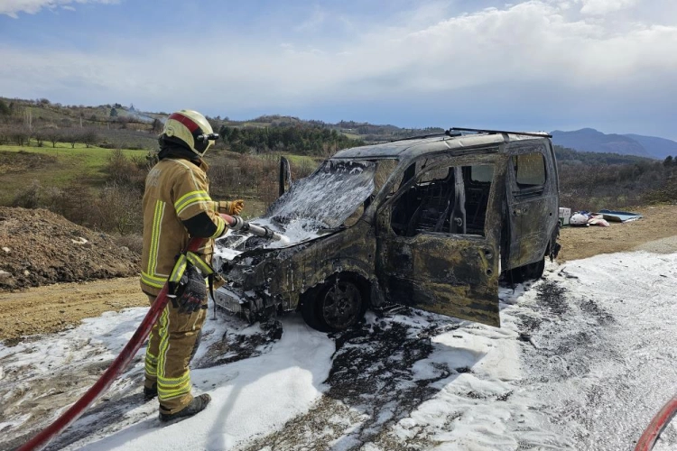 Olay, İnegöl ilçesi İsaören ile Çayyaka Mahallesi yolu üzerinde meydana geldi. İsaören'den Çayyaka Mahallesi'ne seyir halinde olan İsaören Mahalle Muhtarı İsmail Çıbukçu yönetimindeki 16 AIV 459 plakalı araç henüz bilinmeyen bir sebepten dolayı alev aldı. Durumu fark eden muhtar, aracı yol kenarına park edip itfaiyeye haber verdi. Kısa sürede büyüyen yangın, yol kenarında bulunan anıza sıçradı. Olay yerine gelen itfaiye ekipleri yangını büyümeden söndürdü. Yangın sonrası araç kullanılamaz hale geldi.