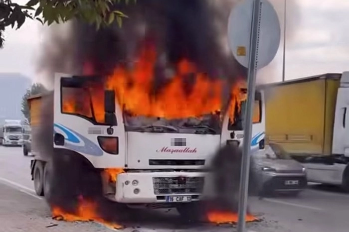 Olay, Bursa Çevre Otoyolu’nda meydana geldi. İddiaya göre, trafikte ilerleyen bir kamyonun motor kısmından henüz bilinmeyen bir nedenle dumanlar yükselmeye başladı. Kısa sürede alevlere dönüşen yangın, tüm aracı sardı. Durumu fark eden sürücü, kamyonu emniyet şeridine çekerek kendini dışarı attı. İhbar üzerine olay yerine çok sayıda itfaiye ve polis ekibi sevk edildi. İtfaiye ekipleri yangına kısa sürede müdahale ederek alevleri kontrol altına aldı. Yangın sırasında çevrede yoğun duman oluşurken, bölgedeki trafik bir süre aksadı. Yangının çıkış nedeni henüz belirlenemezken, olayla ilgili inceleme başlatıldı.