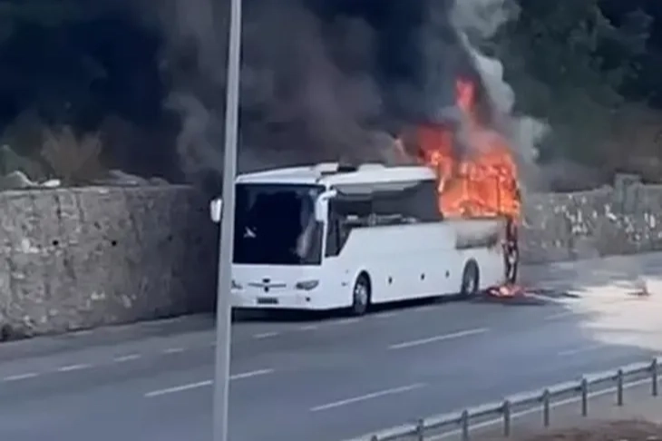 Olay, 15.30 sıralarında Bursa-Gemlik yolu Dürdane rampası üzerinde meydana geldi. Edinilen bilgiye göre, yolcu otobüsü motor kısmından yaptığı arıza sonucu seyir halindeyken alev almaya başladı. Otobüs şoförü, aracın alev aldığını görünce hemen emniyet şeridine yanaştı. Kısa sürede büyüyen alevler otobüsü sararken, araçtakiler 112 ekiplerine ulaştı. İhbar üzerine olay yerine sevk edilen itfaiye ekipleri alevleri kısa sürede söndürürken, otobüs kullanılamaz hale geldi. Olayla ilgili tahkikat başlatıldı.
