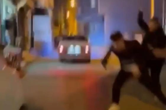 Bursa'da aralarında husumet olduğu iddia edilen 2 grup, sokak ortasında birbirine girdi. Sokağın boks ringine döndüğü anlar amatör kamerayla kaydedildi.