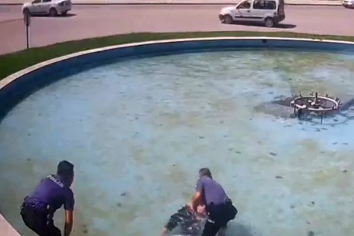 Şahsın boğulmak üzere olduğu ve polis ekiplerinin kurtardığı anlar bir iş yerinin güvenlik kamerasına saniye saniye yansıdı. Olay, 11.30 sıralarında İnegöl merkezinde meydana geldi. Edinilen bilgilere göre, Selçuk E.(51), dengesini kaybederek süs havuzuna düştü. Çevredeki vatandaşların durumu fark etmesi üzerine olay yerine polis ekipleri sevk edildi.
