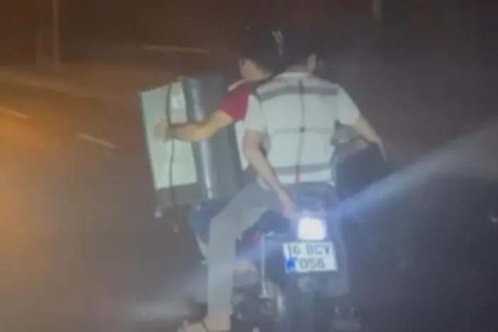Bursa'nın, merkez Osmangazi ilçesinde trafiğin en yoğun olduğu yerlerden biri olan İzmir Yolu Caddesi üzerinde 3 kişi motosiklete binerek trafiği tehlikeye düşürdü. Tüm bunlar yetmezmiş gibi bir de yük taşıyan kişiler ekipmansız şekilde kilometrelerce ilerledi. O anlar trafikteki diğer sürücülerin cep telefonu kamerasına anbean yansıdı.