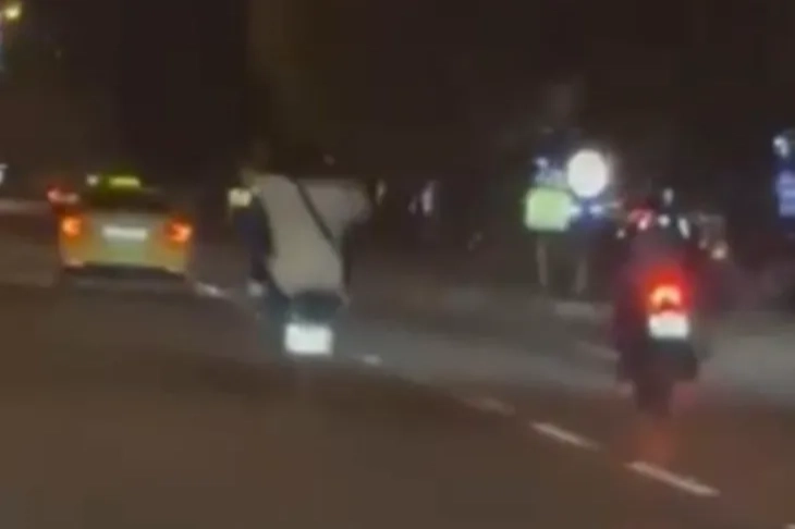 Bursa'nın Nilüfer ilçesi Odunluk mevkisi üzerinde seyir halindeki bir motosiklet sürücüsü yaptığı hareketle yürekleri ağza getirdi. Anayolda arkadaşlarıyla ilerleyen motosikletli tek teker üzerinde kilometrelerce seyretti. Hem kendinin hem de trafikteki diğer vatandaşların canını hiçe sayan sürücü, trafikteki diğer sürücülerin kamerasına yansıdı.