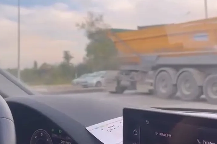 Yol ayrımından girmek için hareket eden otomobil ise, karşısında gördüğü kamyonu görünce neye uğradığını şaşırdı. Ters yönden gelen 16 BBJ 665 plakalı kamyon, herkesin canını hiçe sayması, 10 dakika veya 10 kilometre kaybetmek istememek için 'pes' dedirten hareketi, saniye saniye cep telefonu kamerasına yansıdı.