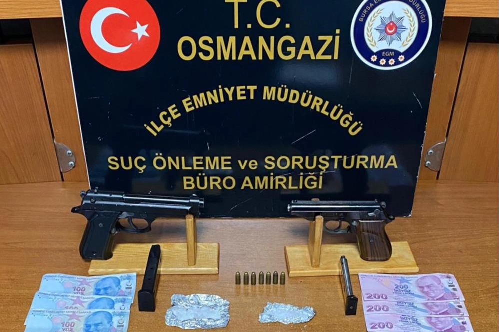 Olay, merkez Osmangazi ilçesi Geçit Mahallesi'nde meydana geldi. Edinilen bilgiye göre, Osmangazi İlçe Emniyet Müdürlüğü'ne bağlı Suç Önleme ve Soruşturma Büro Amirliği ekipleri devriye sırasında şüphelendikleri bir aracı durdurdu. Araçta bulunan M.C., S.K. ve M.B. isimli şahıslara yaptıkları kaba üst yoklamasında 8.13 gram metamfetamin ele geçirildi. Ekipler devam eden çalışmalarda uyuşturucuyu aldıkları şahıs olan M.A.J.'nin kısa sürede adresini tespit ederek operasyon düzenledi. Şüpheli M.A.J.'nin evinde yapılan aramada 2.97 gram uyuşturucu madde, bir adet normal ve kuru sıkı tabanca, 5 adet mermi ile uyuşturucu ticaretinden elde edildiği düşünülen bin 900 TL nakit para ele geçirdi. Yapılan soruşturmada M.C., S.K. ve M.B.'nin tabanca karşılığında M.A.J.'den uyuşturucu maddeyi aldıklarını tespit etti. Gözaltına alınan M.A.J., M.B., M.C. ve S.K.'nin emniyetteki işlemleri sürüyor.