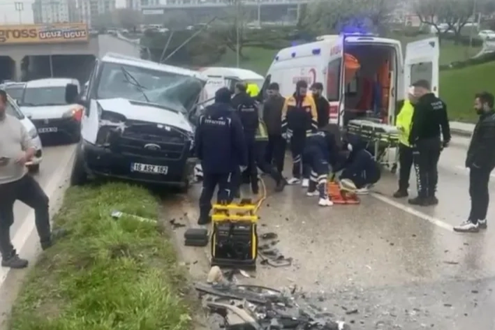 Kaza Ataevler Kavşağı yakınlarında öğle saatlerinde meydana geldi. Üçevler yönünden Ata Bulvarı istikametine giden kamyonet sürücüsünün direksiyon hakimiyetini kaybetmesiyle karşı yöne geçti. Bir minibüsle çarpışan kamyonetin sürücüsü şoför kabininde sıkıştı. Kazada minibüste de bir kişi yaralandı. Direksiyon başında sıkışıp ağır yaralanan kamyonet sürücüsü itfaiye ekiplerince çıkartılıp hastaneye kaldırıldı. Diğer yaralının durumunun daha iyi olduğu bildirildi. Kazayla ilgili soruşturma başlatılırken, feci kaza bir işyerinin güvenlik kamerasına saniye saniye yansıdı.
