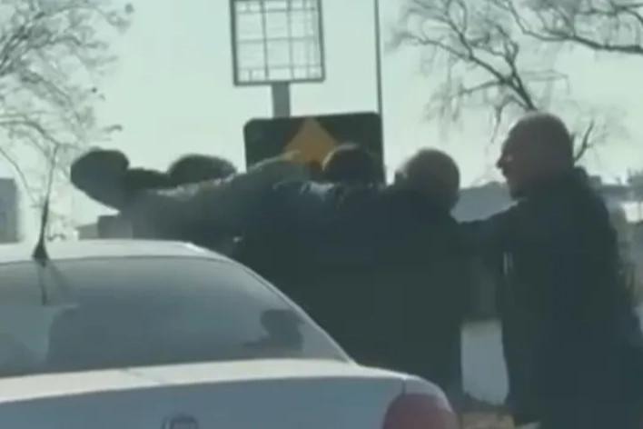 Olay merkez Osmangazi ilçesi İzmir Yolu caddesi Acemler mevkiinde meydana geldi. İddiaya göre, yoğun trafikte ilerlemeye çalışan iki sürücü yol verme meselesi nedeniyle sözlü tartışmaya başladı. Kısa sürede büyüyen tartışma kavga dönünce, öfkeli taraflar araçlarından inip bir birlerine tekme tokat vurmaya başladı. Öfkeli tarafların caddeyi ringe çevirdiği anlar kameraya yansırken, tarafları çevredekiler ayırdı.