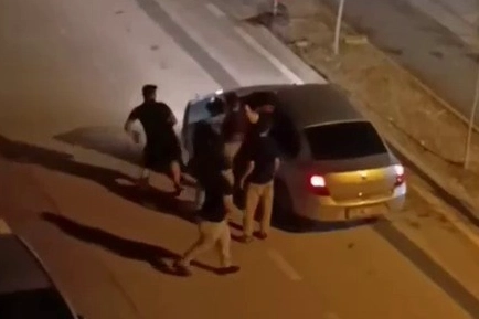 O anlar, cep telefonu kamerasıyla kaydedildi. Görüntülerde, iki kişinin birbirine defalarca yumruk attığı, çevredekilerin ise güçlükle müdahale ettiği anlar yer aldı.