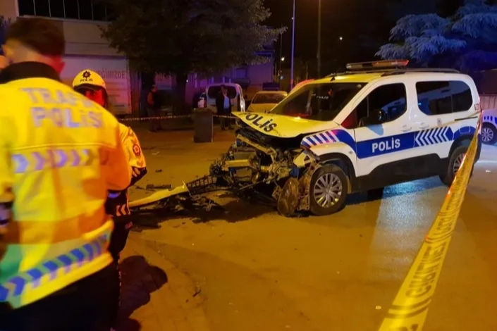 Kaza, saat 01.00 sıralarında Hamidiye Mahallesi Cami Aralığı Sokak ile Kurtuluş Sokak'ın kesiştiği kontrolsüz kavşakta meydana geldi. Kavga ihbarına gitmek üzere Cami Aralığı Sokak üzerinde seyir halinde olan sürücü polis memuru A.D.(33) yönetimindeki polis aracı ile Kurtuluş Sokak üzerinde seyir halinde olan Gürkan B.(33) yönetimindeki 16 BIL 236 plakalı hafif ticari araç iki sokağın kesiştiği kavşakta çarpıştı. Çarpışmanın etkisiyle savrulan hafif ticari araç park halindeki 16 BHH 711 plakalı araca çarparak durabildi. Kaza sonucu polis otosunun sürücüsü polis memuru A.D. ile yanındaki polis memuru M.A.A.(31) yaralandı. Yaralı polisler ambulanslarla İnegöl Devlet Hastanesi Acil Servisi'ne kaldırılarak tedavi altına alındı. Polis kazayla ilgili soruşturma başlattı.
