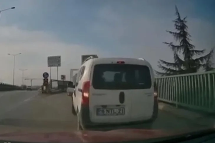 Olay, merkez Osmangazi ilçesi İstanbul Yolu Caddesi köprülü kavşak üzerinde meydana geldi. Sürücüsü ve plakası henüz öğrenilemeyen hafif ticari araç, yolu kaçırdı. Arkasına bakmadan geri manevra yapmak isteyen araç, diğer sürücüleri de zor durumda bıraktı. Korna ikazlarına aldırış etmeyen dikkatsiz sürücü, hiçbir şey yokmuş gibi yoluna devam etti. İlginç anlar saniye saniye araç içi kamerasına yansıdı.