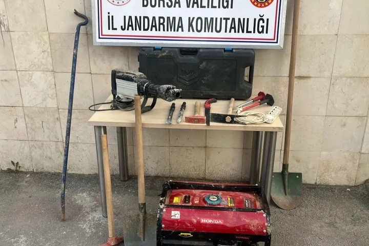 Bursa İl Jandarma Komutanlığı ekipleri, Gemlik İlçesi Şahinyurdu Mahallesi ormanlık alanında kaçak kazı yapıldığı ihbarı üzerin harekete geçti. Olay yerine giden ekipler, define arayan 4 kişiye suçüstü yaptı. Gözaltına alınan zanlılarla beraber, 1 adet jeneratör, 2 adet kırıcı ve delici matkap ve 13 adet muhtelif kazı malzemeleri ele geçirildi.