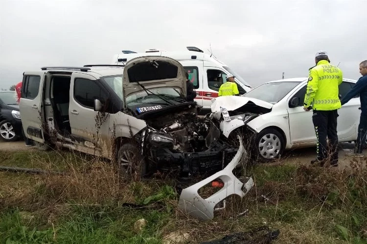 Kaza saat 13.00 sıralarında Mesudiye ile Alanyurt'u bağlayan beton yolda meydana geldi. Sürücü Eyüp Karabulut (25) yönetimindeki 16 BDG 759 plakalı hafif ticari araç, karşı yönden gelen Mehtap Bergin (41) idaresindeki 46 ZA 335 plakalı otomobil ile kafa kafaya çarpıştı. Çarpışmanın etkisiyle araçlar savrulurken, sürücüler ile 16 BDG 759 plakalı araçtaki yolcu Barış Can Çakır (23), diğer araçtaki 8 yaşındaki Yağız B. ve 6 yaşındaki Ayaz B. yaralandı.