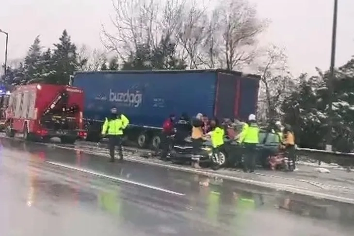 Kaza, sabah saat 08.10 sıralarında Anadolu Otoyolu Sapanca ilçesi geçişinde meydana geldi. Edinilen bilgiye göre, İstanbul istikametinde ilerlemekte olan İ.K. (53) kontrolündeki 34 EVA 561 plakalı otomobil, sürücüsünün kontrolünden çıktı. Savrulan otomobil, yolun sağ şeridinde ilerlemekte olan M.A. (53) idaresindeki 80 AHC 03 plakalı çekiciye bağlı olan 80 ADD 724 plakalı dorsenin altına girdi. Adeta kağıt gibi ezilen otomobil içerisinde bulunan sürücü İ.K. ile araç içerisinde yolcu olarak bulunan Mustafa Tuncay (29) ile eşi İ.K.T. (26) ve 3 yaşındaki çocukları M.L.T. yaralandı. Kazanın haber verilmesi üzerine bölgeye itfaiye, sağlık ve jandarma ekipleri sevk edildi.