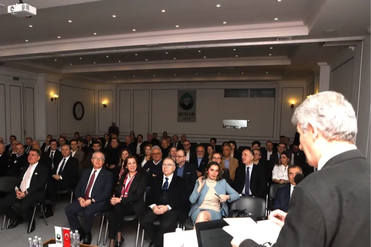 TÜSİAD Yönetim Kurulu Başkanı Orhan Turan, TÜSİAD Yönetim Kurulu Başkan Yardımcısı Serpil Veral ve MARSİFED Başkanı Osman Akın’ın da katıldığı etkinlikte. TÜSİAD Başekonomisti Gizem Öztok Altınsaç. “Ekonomik görünüm 2025” başlıklı bir sunum gerçekleştirdi.