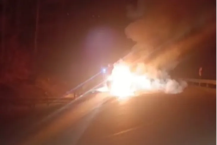 Edinilen bilgiye göre olay, Bursa Uludağ yolu Hüseyin Alan köyü girişinde meydana geldi. İftar için Hüseyin Alan köyüne gittiği öğrenilen bir kişi gece geç saatte Bursa'ya doğru yola çıktı. Kullandığı otomobil köy yol ayrımında motor kısmından alev alan sürücüsü alevler bir anda büyüyünce aracı durdurup son anda kendini dışarıya atmayı başardı. Alev topuna dönen otomobil ihbar üzerine olay yerine gelen Bursa Büyükşehir Belediyesi İtfaiye ekipleri tarafından söndürüldü. Yangında şans eseri herhangi bir yaralanan olmadı. Uludağ Jandarma Karakoluna bağlı ekipler yangınla ilgili tahkikat başlattı.
