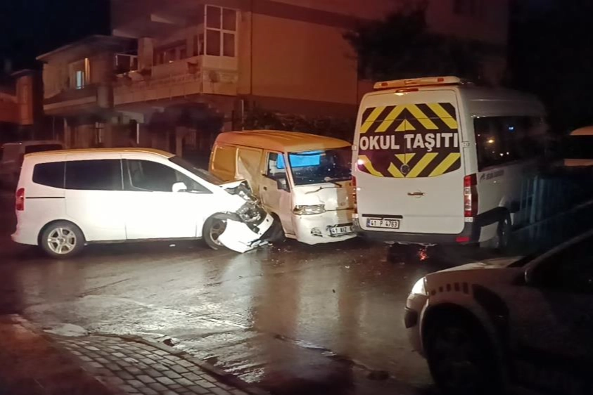 Kaza, gece saatlerinde Çayırova Mahallesi 5202. Sokak'ta meydana geldi. Edinilen bilgiye göre, caddeye çıkan S.K. idaresindeki 41 AIZ 698 plakalı Hyundai marka panelvan ile sürücüsünün ismi ve plakası bilinmeyen Ford marka hafif ticari araç, yağmur sebebiyle kayganlaşan yolda çarpıştı. Savrulan araçlar park halindeki 41 P 4763 plakalı Mercedes marka minibüse çarparak durabildi.