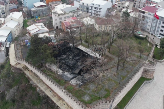 Yangın çıkan tarihi kalenin son görüntüsü yürekleri burktu