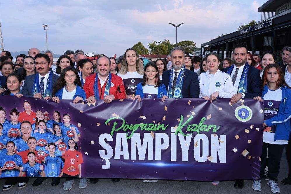 Kadınlar Hentbol 1'inci Ligi'ni şampiyon tamamlayıp Süper Lig'e çıkan Bursa Büyükşehir Belediyespor Kulübü Kadın Hentbol Takımı Poyrazın Kızları, Mudanya’da şampiyonluğu kutladı. Sanayi ve Teknoloji Bakanı Mustafa Varank’ın da katıldığı kutlamada konuşan Bursa Büyükşehir Belediye Başkanı Alinur Aktaş, ‘Poyrazın’ artık Türkiye’de ve Avrupa’da da çok sert eseceğini söyledi.