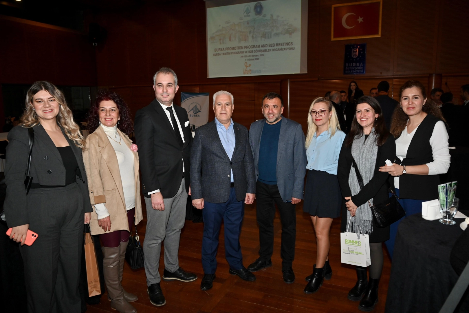 Bursa’nın turizmden daha fazla pay alabilmesi için dünyanın her bölgesinde tanınırlığının artmasına yönelik çalışmalarına devam eden Bursa Büyükşehir Belediyesi, tanıtım atağını hız kesmeden sürdürüyor. İstanbul’daki 28. EMITT Fuarı’nda 40’a yakın kadın derneği ve kooperatifin katılımıyla Bursa’yı tanıtan Büyükşehir Belediyesi, 15 ülkenin 33 turizm acentesinden 35 sektör temsilcisini Bursa’da ağırladı. Merinos Atatürk Kongre Kültür Merkezi’nde düzenlenen programda, taraflar birebir görüşmeler yaparak yapılacak iş birliklerini konuştu. Bursa Büyükşehir Belediye Başkanı Mustafa Bozbey de beraberindeki Büyükşehir Büyükşehir Belediyesi Genel Sekreter Yardımcısı Mehmet Yıldız ve TÜRSAB Güney Marmara Başkanı Murat Saraçoğlu ile birlikte sektör temsilcileriyle bir araya gelerek sohbet etti. EMITT 2025 kapsamında 15 ülkenin 33 turizm acentesinden 35 sektör temsilcisini Bursa’da ağırlamaktan büyük mutluluk duyduklarını söyleyen Başkan Mustafa Bozbey, turizm profesyonelleriyle bir araya gelerek kentin eşsiz tarihini, kültürünü ve turizm potansiyelini paylaştıklarını dile getirdi. Bursa’daki turizm paydaşlarının uluslararası temsilcilerle doğrudan iş bağlantıları kurma fırsatı yakaladığını anlatan Başkan Bozbey, “Ayrıca konuk heyet, profesyonel rehberler eşliğinde gerçekleştirilen tanıtım gezisiyle Bursa’nın doğal ve kültürel zenginliklerini yerinde deneyimleyecek. Bursa turizminin geleceğine katkı sağlayacak bu anlamlı buluşmada emeği geçen tüm kurum ve kuruluşlara teşekkür ediyorum. Şehrimizi dünya turizminde hak ettiği yere taşımak için çalışmaya devam edeceğiz” dedi.