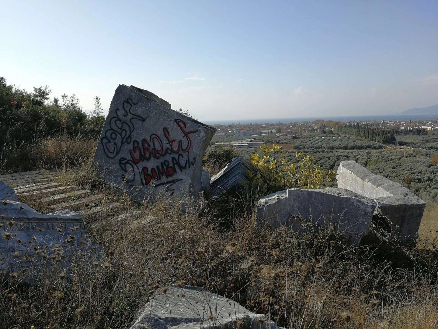 Bursa'nın İznik ilçesinde, 30 ton ağırlığındaki Berberkaya lahdi yine boyayla tahrip edildi.