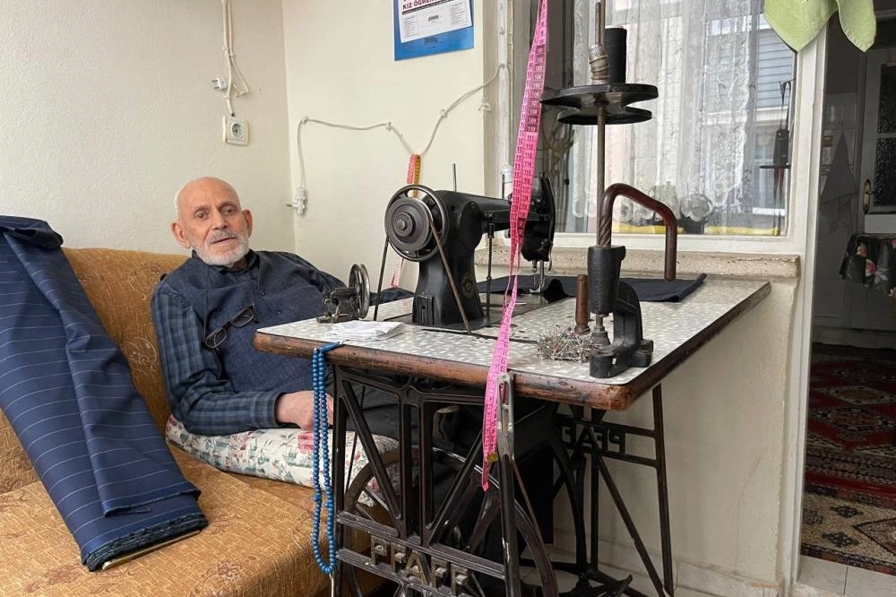 Bursa’nın Karacabey ilçesinde yaşayan terzi Feyzullah Çınay, 13 yaşında çırak olarak başladığı terzilik mesleğine ilk günkü heyecanıyla 70 yıldır ara vermeden devam ediyor. Yaklaşık 15 yıl önce kendi iş yerini kapatsa da kendisine talepte bulunan yakınlarını kıramayan Çınay, evinin balkonunu atölyeye çevirerek çalışmalarına devam ediyor. Kendisiyle yaşıt bir dikiş makinesi kullandığını söyleyen Çınay, makinesinin eski olmasına rağmen kendisi gibi hala güzel işler çıkardığını söylüyor. “70 yıldır hiç yorulmadım çünkü işimi severek yaptım” 70 yıldır devam ettirdiği mesleğine ömrü el verdiği sürece devam edeceğini söyleyen Feyzullah Çınay, “İş yerimi kapatana kadar 55 yıl terzilik yaptım. 2010 yılında iş yerimi kapattıktan sonra evimin balkonuna atölye kurarak 15 yıldır da bu şekilde terzilik yapıyorum. Hiç yorulmadım. Çünkü mesleğimi severek yaptım. Balkonumda daha rahat bir şekilde dinlenme fırsatı buluyorum. Bizim meslekte 1960 yılından sonra çırak bulamaz olduk. Çırak bulamadığımız için mesleği kendi imkanlarımız ile devam ettirmeye mecbur kaldık. Gençlere çalışmayı tavsiye ediyorum. Çoğunluğu yakınlarım ve dostlarımdan oluşan müşterilerden ücret almıyorum. Ben sizin paranızı değil duanızı bekliyorum. Alman üretimi dikiş makinesi kullanıyorum. Makinem benimle yaşıt ama kendisinden o kadar memnunum ki hala kullanıyorum. Çok güzel çalışıyor” şeklinde konuştu