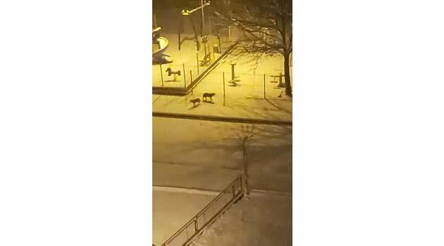 Aç kalan kurtlar mahalleye kadar geldi. Kurtları gören vatandaş gözlerine inanamazken, hemen o anları kayıt altına aldı. Bir süre çocuk parkında ve çevrede yiyecek arayan 2 kurt daha sonra gelen sesler üzerine bölgeden hızla uzaklaştı. Geriye ise bu görüntüler kaldı.