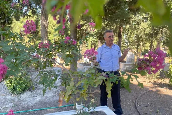 22 dönümü tertemiz yaptı Hüseyin Güven, yaptığı açıklamada, 18 yıl önce lise ikinci sınıftayken 16 yaşındaki oğlunu kaybettikten sonra zamanının büyük bölümünü mezarlıkta geçirdiğini anlattı. Mezarlık alanının yaklaşık 22 dönüm olduğunu aktaran Güven, şöyle konuştu: "Bugüne kadar 1500 fidan, çiçek ve süs bitkileri diktik. Mezarlıktaki tüm bitkiler yeraltından çekilen suyla damla sulamayla sulanıyor. Fidanların tamamının hayatta kalmaları, gelişmeleri, büyümeleri, renkli çiçeklerin açması, budaması, gibi her türlü bakımını haftanın belirli günlerinde yapmaya çalışıyorum. Mezarlıktaki çalışmalarım ben sağ oldukça, sağlığım imkan verdikçe devam edecek." 4 ağaç arasına mezar planı Mezarlığa gelenler su içsin, abdest alsın diye mermerden sebil yaptırdıklarını anlatan Güven, suyun boşa akmadığını fidanların, çiçeklerin sulamasında kullanıldığını söyledi. Kabristan yeni mezar yerlerinin bir planla belirlendiğini dile getiren Güven, "4 ağaç arasına mezar yerleri kazdırıyoruz. Gelişigüzel olmasın düzenli olsun istiyoruz. Bütün temennimiz beklentimiz köyümüz gençlerinin bu konuya ilgi gösterip bizden sonraki süreçte burasının bir park görüntüsü halinde devam etmiş olması." dedi.