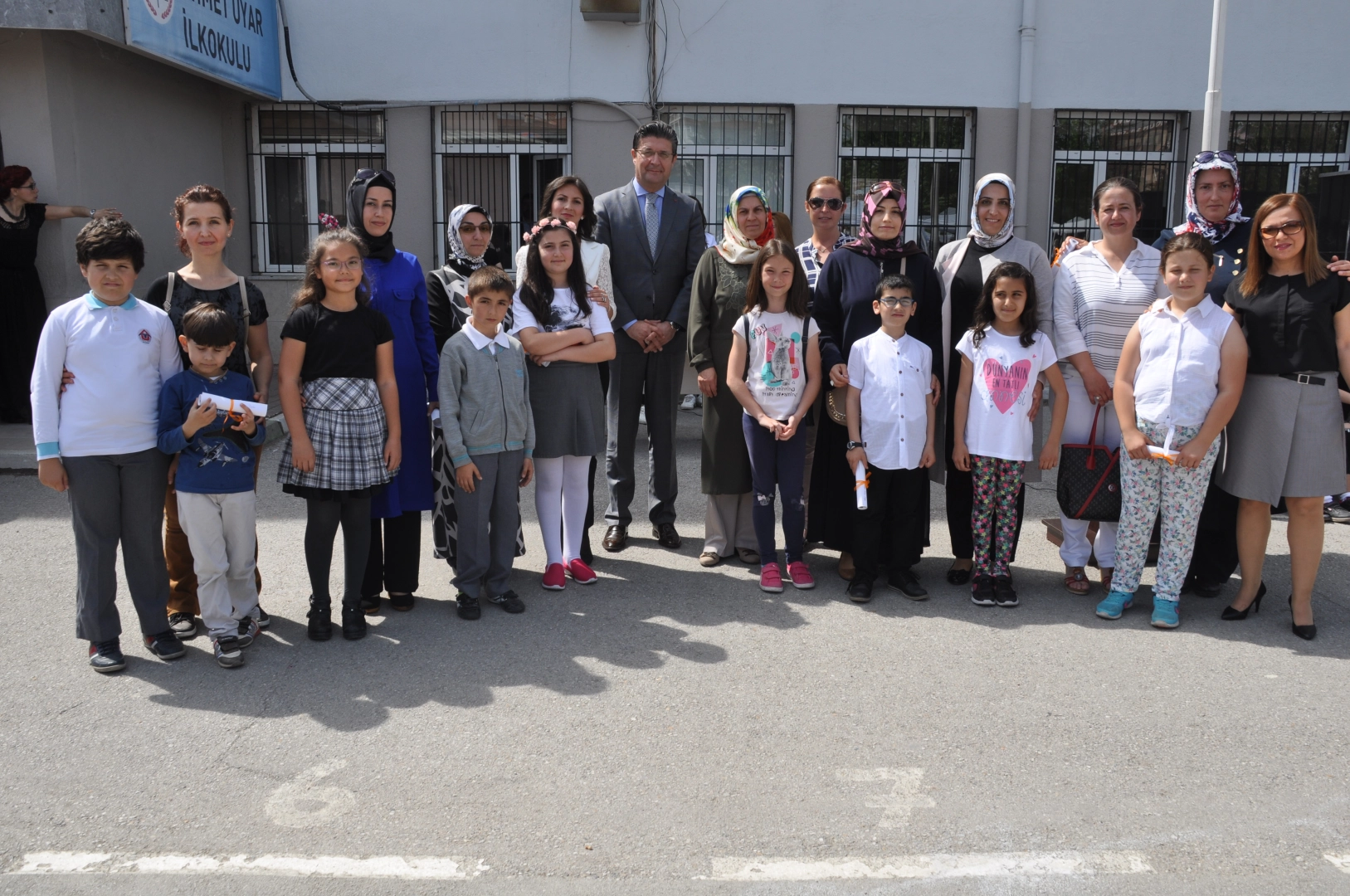 Okul bahçesinde yapılan kermes ve yıl sonu sergisine, Nilüfer Milli Eğitim Müdürü Mustafa Muharrem Tüfekçi Ahmet Uyar İlk Öğretim Okulu Müdürü Metin Köse ve Müdür Yardımcısı Nurettin Gündüz, İbrahim Uyar İlköğretim Okulu Müdürü Halil İbrahim Torun, Dilek Özer İlköğretim Okulu Müdürü İsmail Aksoy, öğretmenler, veliler ve öğrenciler katıldı. Törende konuşma yapan Okul Müdürü Metin Köse, “ Geleneksel 3. Yılsonu sergisi ve kermesimizi anneler günüyle de birleştirerek daha anlamlı bir etkinliğe imza attık. İl çapında düzenlenen mangala turnuvasında okulumuz 3. ve 4. sınıf öğrencileri 2’cilik ve 3’lük ödülleri kazandılar, kendilerini bir kez daha tebrik ediyorum. Ayrıca okulumuzun Rehberlik Servisi tarafından aileler için çok faydalı eğitimler gerçekleştirildi. Değerli öğretmenlerimize ve katılım gösteren velilerimize ayrıca teşekkür ediyorum.” dedi. Konuşmanın ardından, mangala turnuvasında derece kazanan öğrencilere okul yönetimi tarafından ödülleri verildi. Rehberlik servisi öğretmenleri tarafından hazırlanan aile eğitimlerini düzenleyen öğretmenlere plaket verilirken, eğitimlerde yer alan velilere de katılım belgeleri verildi. Program öğrencilerin sergilediği çeşitli oyun gösterileri ve şiir dinletisiyle devam etti. Törene katılanlar daha sonra anasınıfı öğrencileri tarafından hazırlanan yıl sonu resim sergisini gezdi. Osman ÇETİN